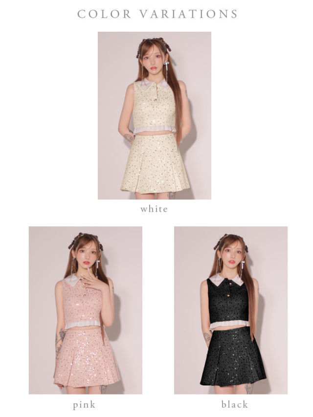 | ■Sサイズ バスト約82cm ウエスト約58~63cm ヒップFREE 着丈(トップス)約35cmスカート丈約38cm |