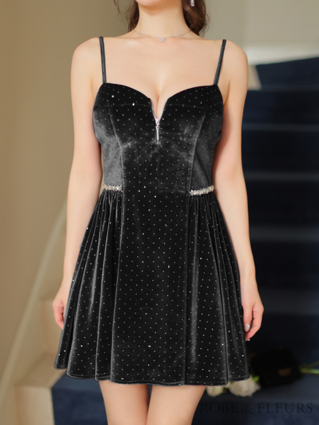 ストーンのついたベロア生地を使ったフレアミニドレス♡