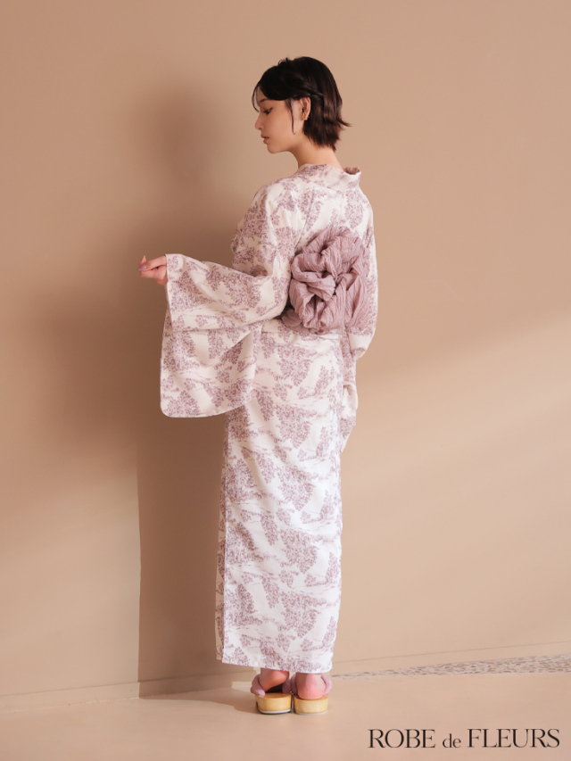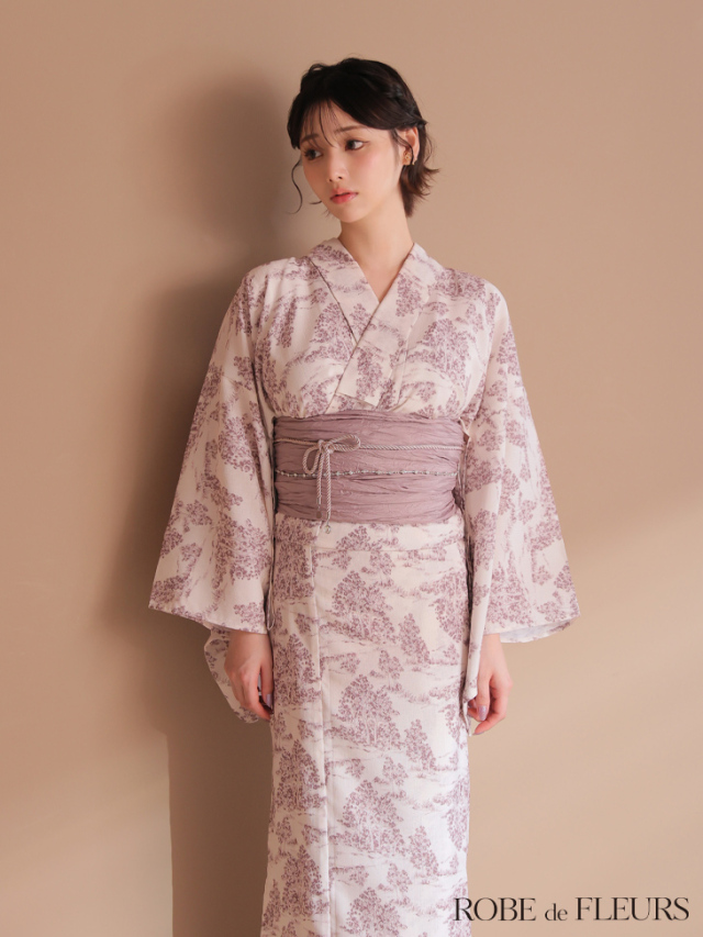 | 実寸サイズ | ■フリーサイズ 浴衣:身丈約167cm 袖丈約49cm 裄丈約69cm 帯:幅約45cm 長さ約400cm |