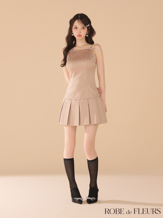 裾のボックスプリーツが上品さとガーリーさを両立。