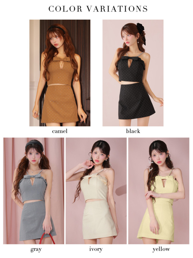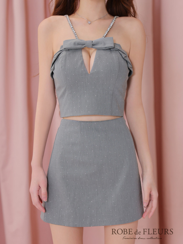 胸元のリボンがかわいいセットアップミニドレス。