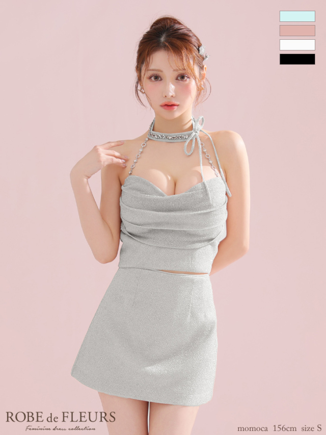 ラメニットの素材感が上品なセットアップミニ。