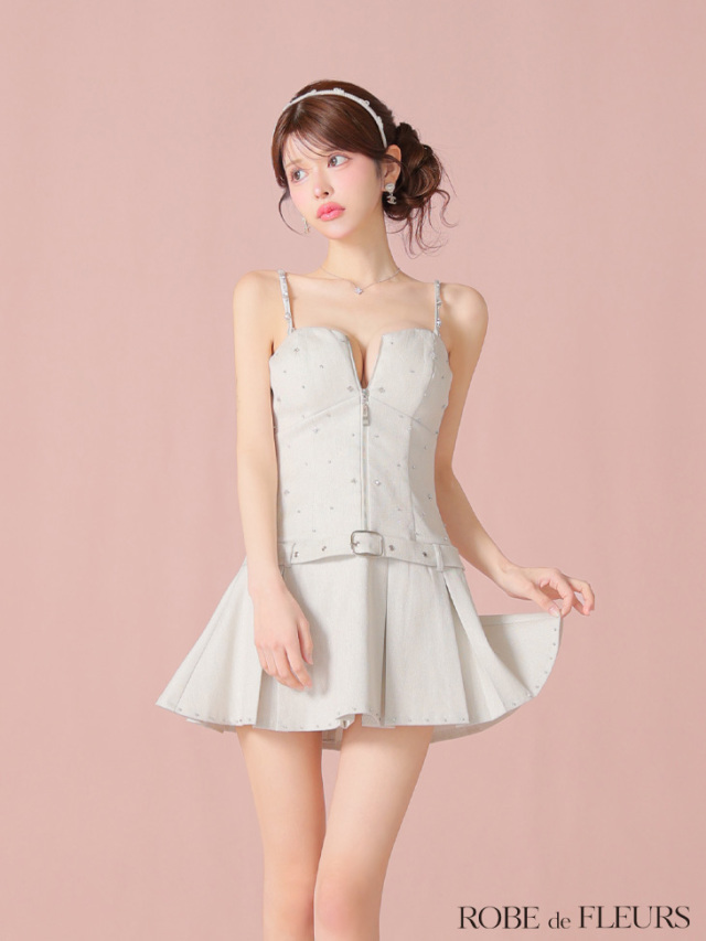さりげなくきらめく生地のミニドレス。