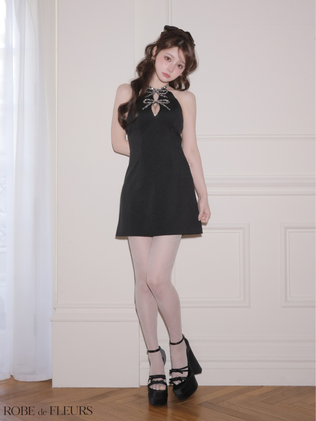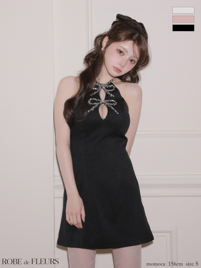 ビジューリボンがラグジュアリーなワンホンワンピ♡