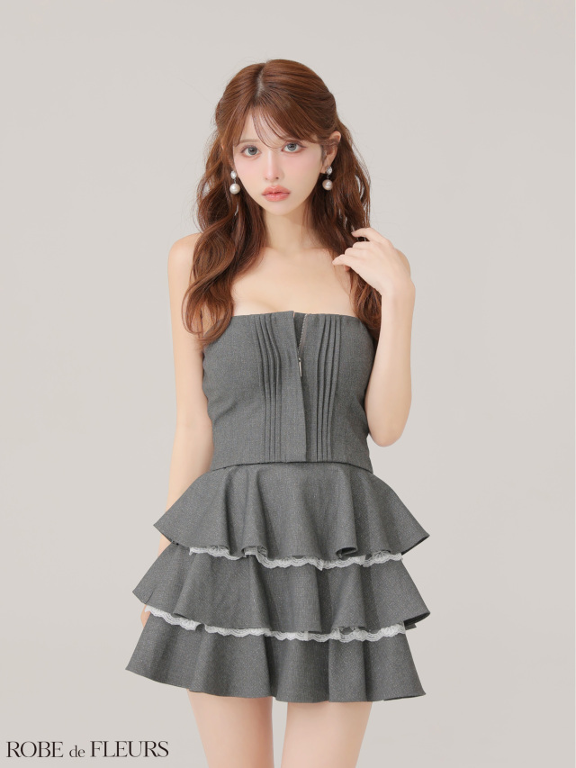スカートの三段フリルがキュートで、ヒップラインをカバーしながら、歩くたびに揺れる。